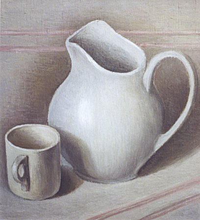 ![]() | Jug + Cup280 mm x 250 mm (11.2 inches x 10 inches) Oil on wood Sold Please respect the Copyright terms of use: Click on the image for instructions on how to link to it. ![]() Return to previous page |